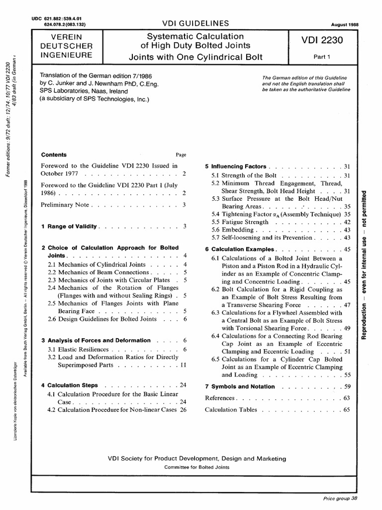 Revised manuscript received april 20, 2001. Deutscher ingenieure, 1986), vdi 2230, gives a method for calculating the bolt load increment as a proportion of the load increment in the 'tributary' width of tower wall under these conditions. Without oversizing or unnecessary safety coefficient,. Joints with one cylindrical bolt a description is not available for this item. More information can be found.
